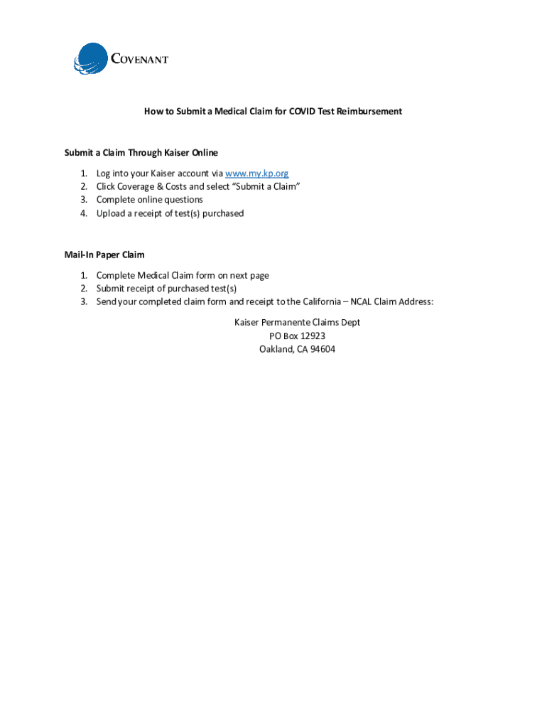 Get the free How to Submit a Medical Claim for COVID Test Reimbursement ...