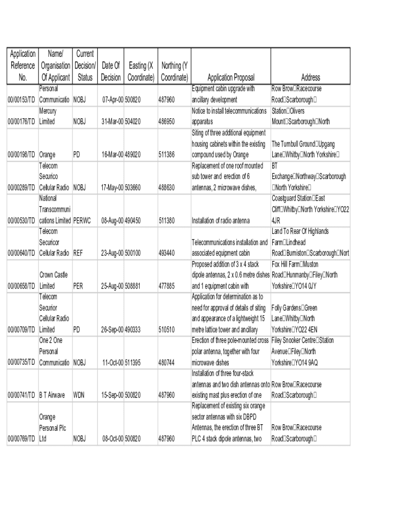 Application Reference No. Name/ Current Organization Decision/ Of Applicant StatusPersonal 00×00153/TD Communication OBJ Mercury 00×00176/TD Limited NOBJ00×00198/TD Orange Telecom Security 00×00289/TD