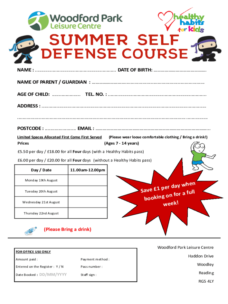 NAME : ............................................................ DATE OF BIRTH:. NAME OF PARENT / GUARDIAN : ........................................................... AGE OF CHILD: .....................