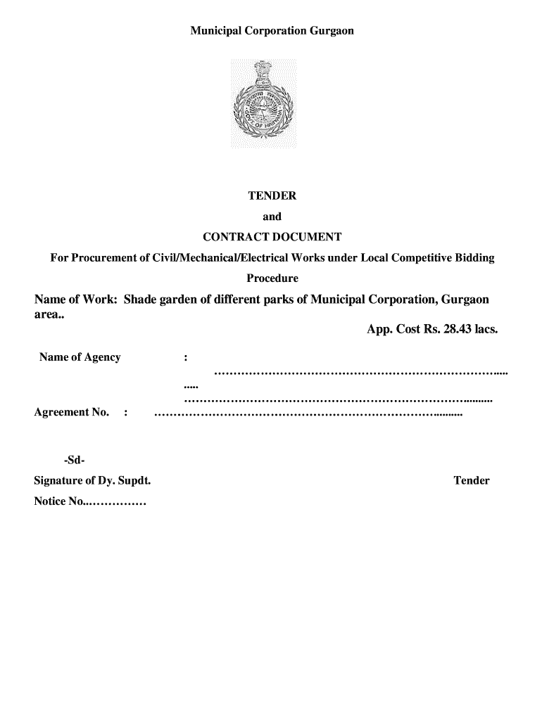 Municipal Corporation Gurgaon TENDER and CONTRACT DOCUMENT For Procurement of Civil/Mechanical/Electrical Works under Local Competitive Bidding Procedure Name of Work: Shade garden of different parks