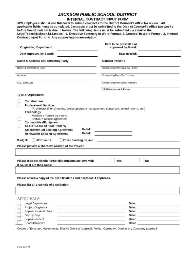 Frequently asked questions about the form Internal Contract Input - jackson.k12.ms.us