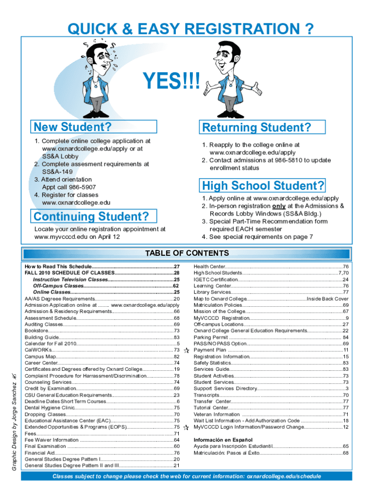 QUICK & EASY REGISTRATION ?YES!!! New Student? Returning Student?1. Complete online college application ATGW.oxnardcollege.edu×apply or AFSSA Lobby 2. Complete assessment requirements atSS&A149 3.