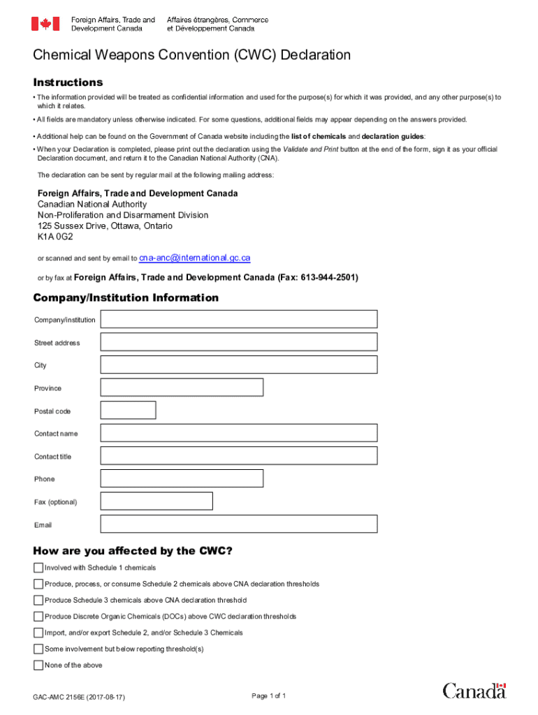 Get the free Chemical Weapons Convention Declaration Form / Dclaration en vertu de la Convention ...
