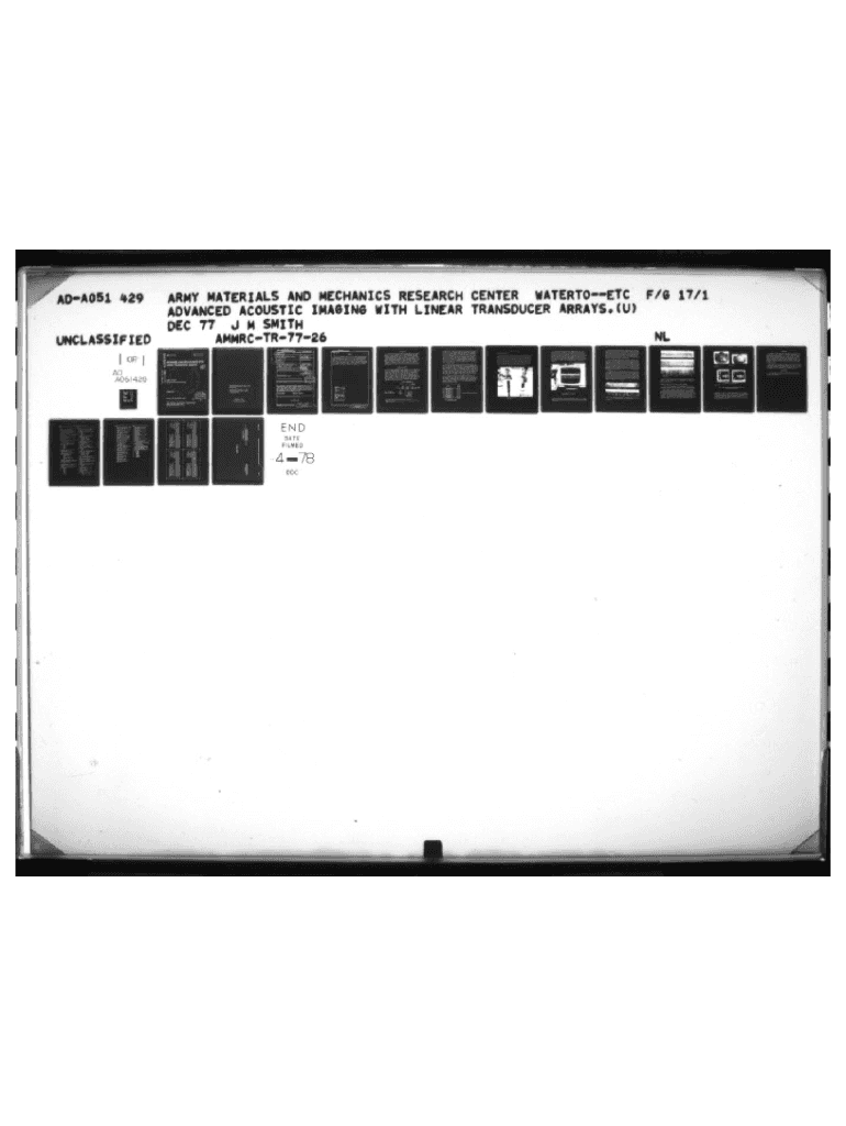 R *QA OBS.a LWCLASSIFIEDMATERIALS NC MECHANICS CHURCH CENTER WAS ROTC F×S 17×I ADVANCED ACOUSTIC 111×11MG With LINEAR TRANSDUCER A×RAYS (U) DCC 77 J H SMITH AUA**C TR77 25×psI0I ill ITII. U Jd2.