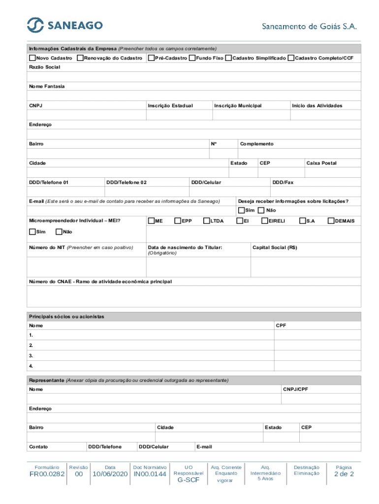 FormulrioAREQUERIMENTO DE INSCRIBE CADASTRAL DE FORNECEDORES PES SOA JURDICAObjetivoCadastro de Fornecedor Na SaneagoAplicaoFornecedor de Material, Ben's, Bras e Servos em GeralEmpresa___com see Na___
