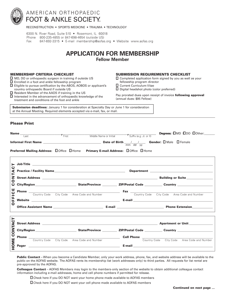 RECONSTRUCTION SPORTS MEDICINE TRAUMA TECHNOLOGY 6300 N. River Road, Suite 510 Rosamond, IL 60018 Phone 800-235-4855 or 847-698-4654 (outside US) Fax 847-692-3315 E-mail membership sofas.org Website