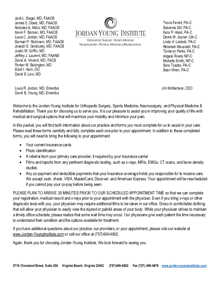 Jack L. Siegel, MD, FA AOS James E. Down, MD, FA AOS Nicholas A. Midis, MD, FA AOS Kevin F. Bonner, MD, FA AOS Louis C. Jordan, MD, FA AOS Samuel P. Robinson, MD, FA AOS Joseph S. Sandusky, MD, FA