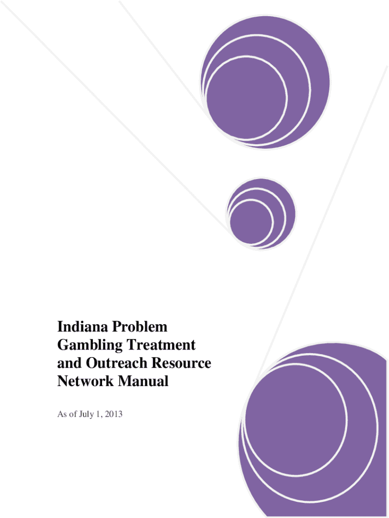 Indiana Problem Gambling Treatment and Outreach Resource Network Manual As of July 1, 20132Table of Contents Section 1: BACKGROUND Section 2: CLINICAL RESOURCES Section 3: EDUCATION AND OUTREACH Section