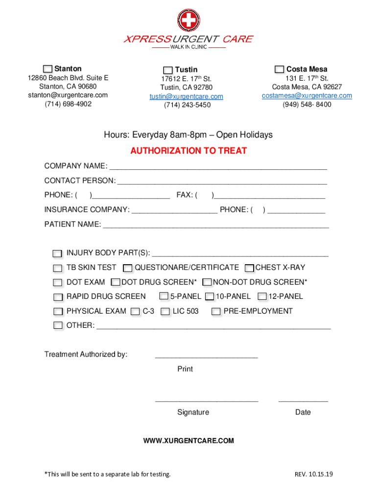 Get the free Everyday 8am-8pm Open Holidays AUTHORIZATION TO TREAT