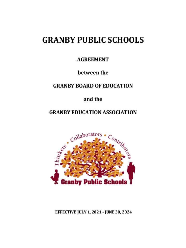 GRANBY PUBLIC SCHOOLS AGREEMENT between the GRANBY BOARD OF EDUCATION and the GRANBY EDUCATION ASSOCIATIONEFFECTIVE JULY 1, 2021, JUNE 30, 2024TABLE OF CONTENTS PAGE ARTICLE I Recognition ............................................................................................................................................