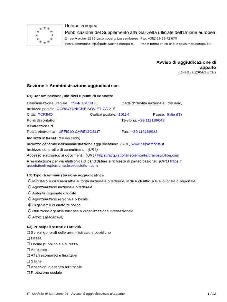 Get the free Avviso di aggiudicazione di appalto - Gara Europea ... - CSI Piemonte