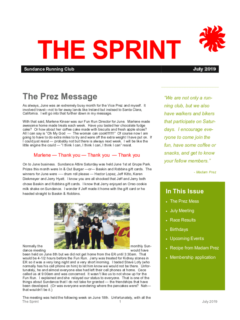 THE SPRINT July 2019Sundance Running Clothe Prey Message are not only a runs always, June was an extremely busy month for the Vice Prey and me. It involved travel not to far away lands like Ireland