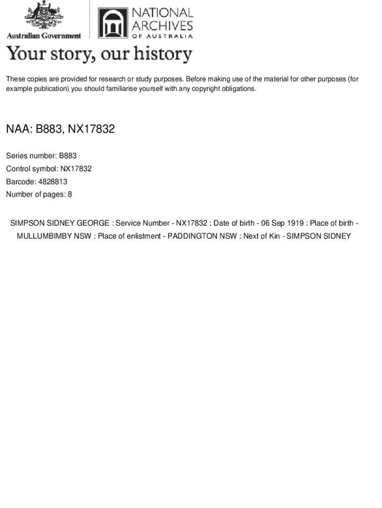 Get the free NAA: B883, NX17832 - recordsearch naa gov