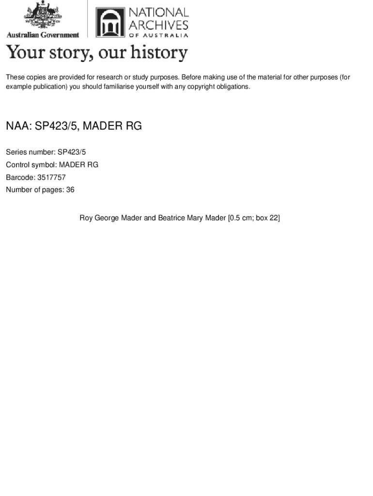 Get the free NAA: SP423/5, MADER RG - RecordSearch - recordsearch naa gov