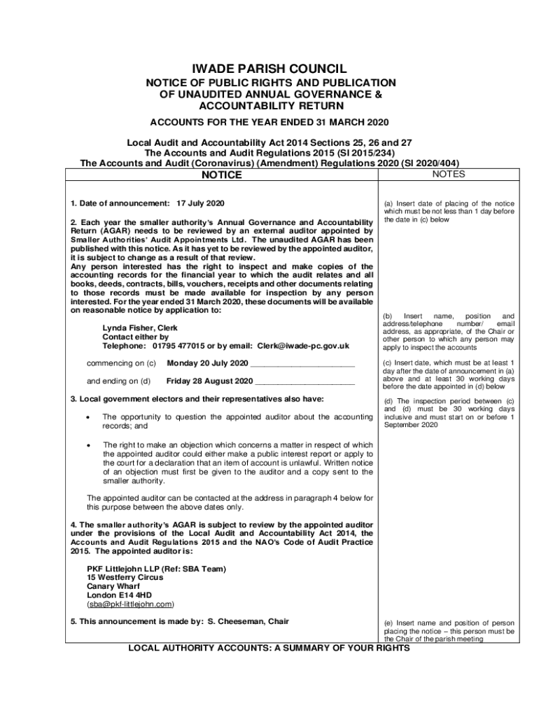 Get the free Notice of public rights and publication of unaudited ...