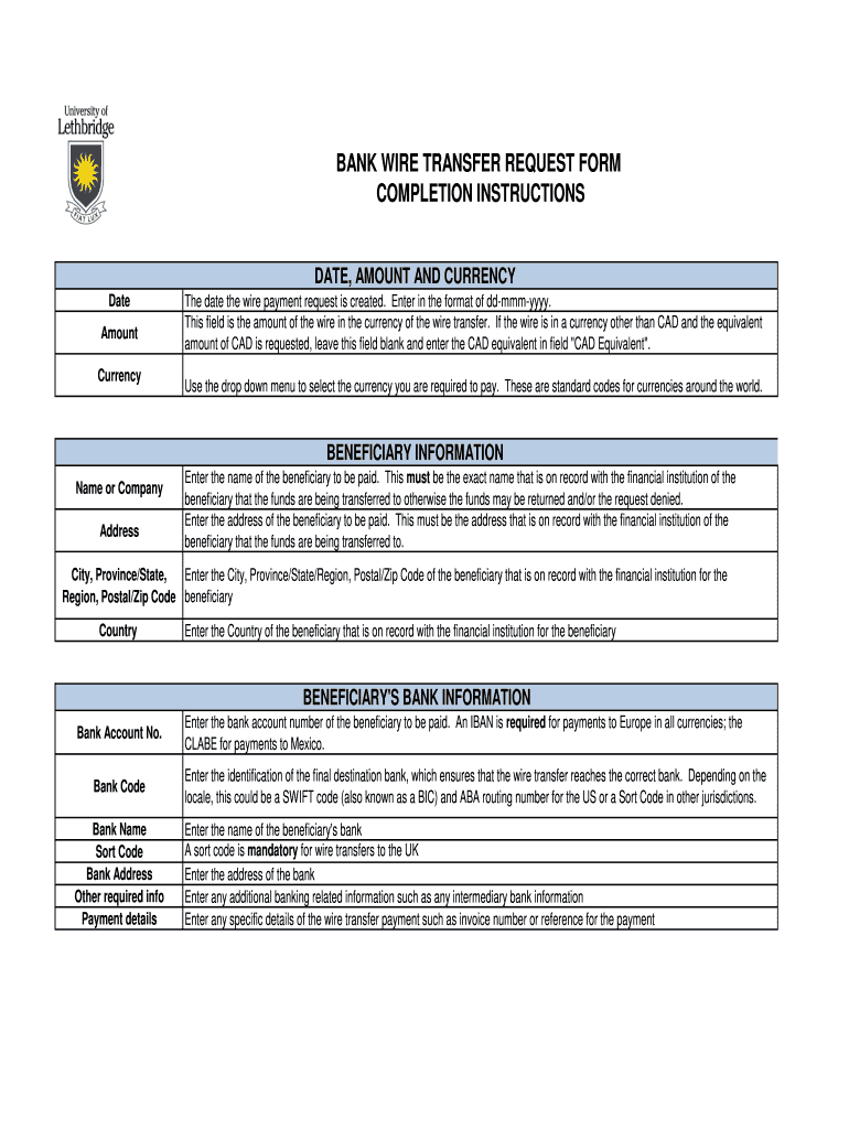 Key Features of the Bank Wire Transfer Request Form