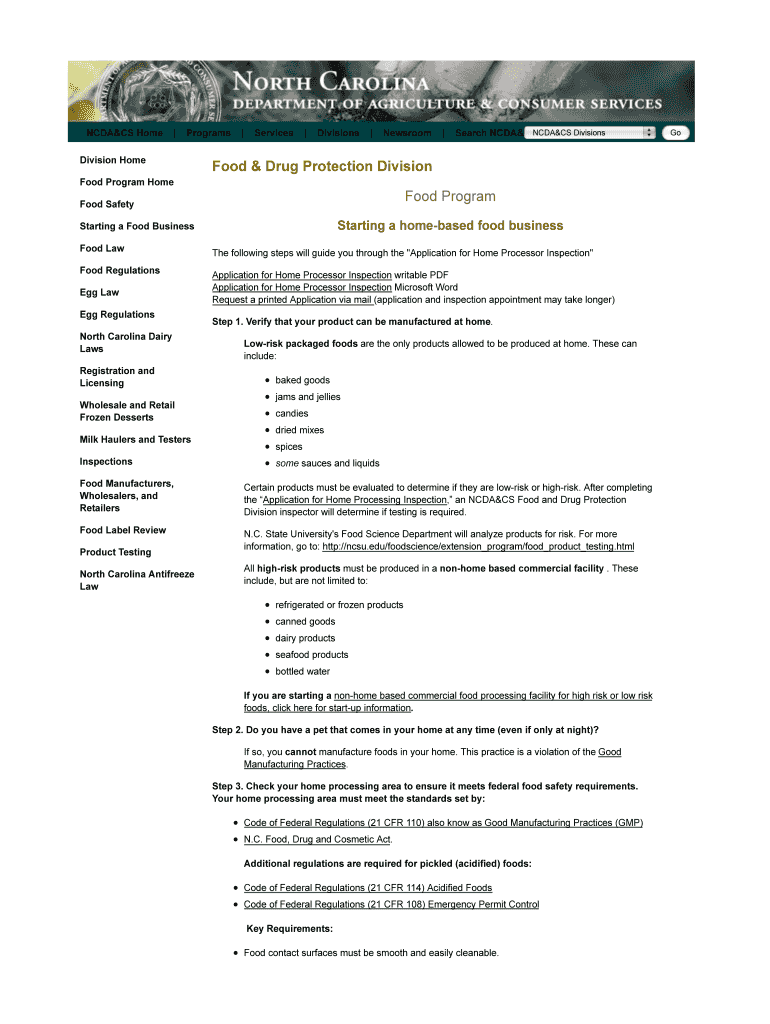 CDAC Home ProgramsDivision Home Services Divisions Newsroom Search NCDA&CSNCDA&CS DivisionsFood & Drug Protection DivisionFood Program Homewood Programmed SafetyStarting a home based food businessStarting