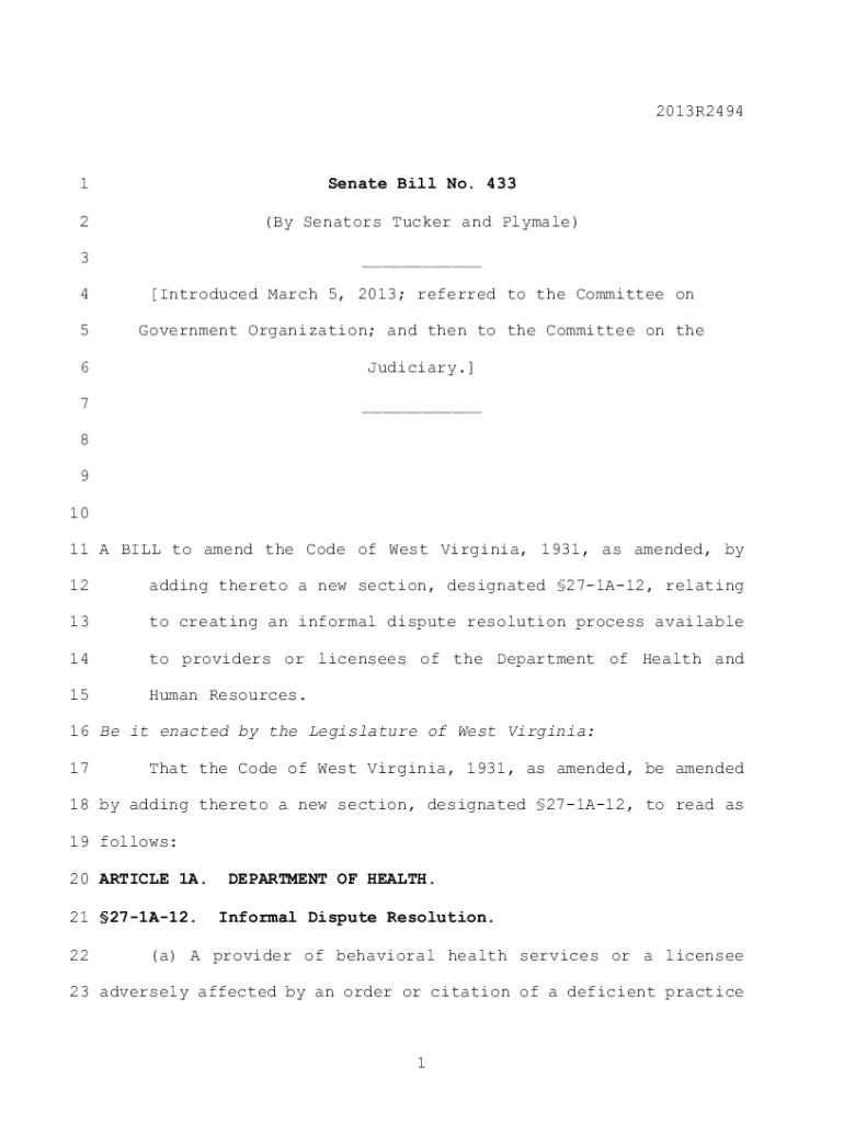 2013R24941Senate Bill No. 4332×By Senators Tucker and Ply male×3___4×Introduced March 5, 2013; referred to the Committee on5Government Organization; and then to the Committee on the6Judiciary.×7___8