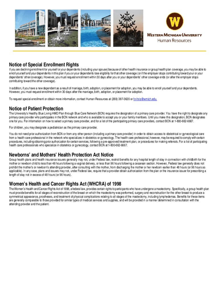 Get the free Notice of Special Enrollment Rights - Western Michigan ...