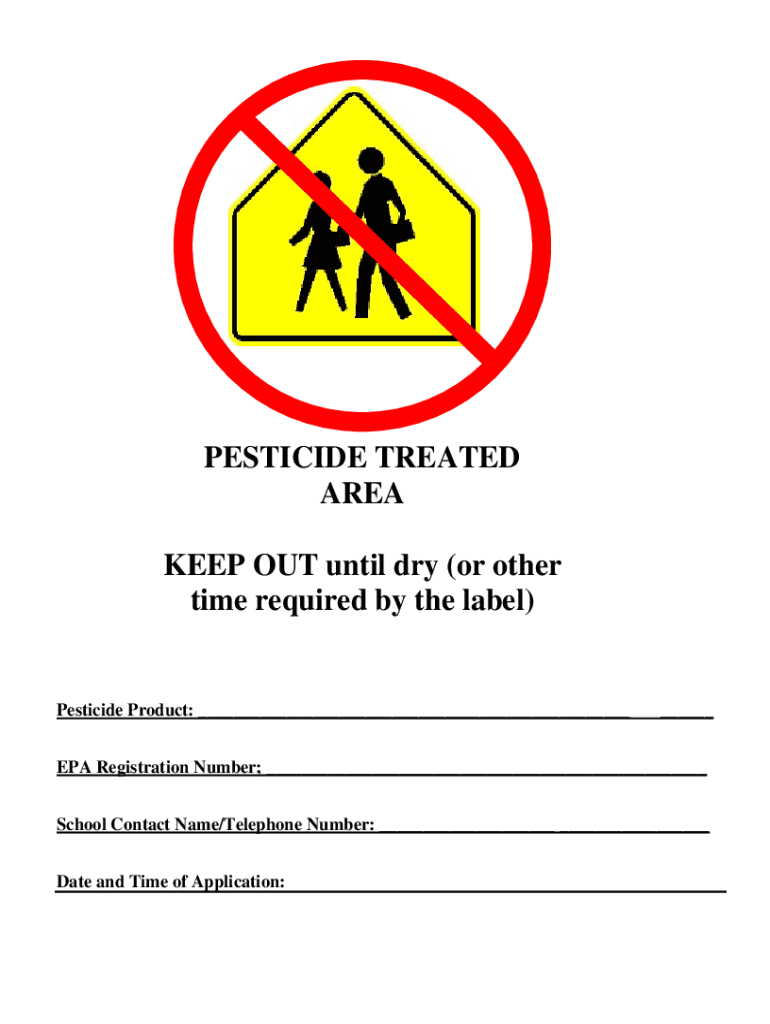 PESTICIDE TREATED AREA KEEP OUT until dry (or other time required by the label×Pesticide Product: ______EPA Registration Number; ___ School Contact Name×Telephone Number: ___ ___ Date and Time of