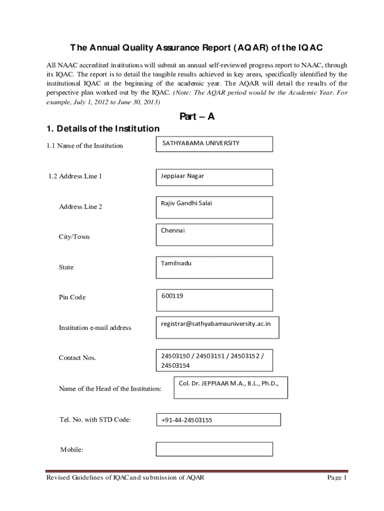 Get the free ANNUAL QUALITY ASSURANCE REPORT (AQAR) OF R. B. MADKHOLKAR ...