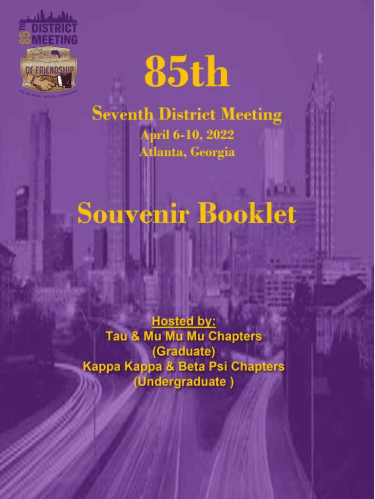 85th Seventh District Meeting Souvenir Booklet Greetings, As each day passes, our chapters continue to blossom and grow. Consequently, with the vision of our charter members, the enduring financial