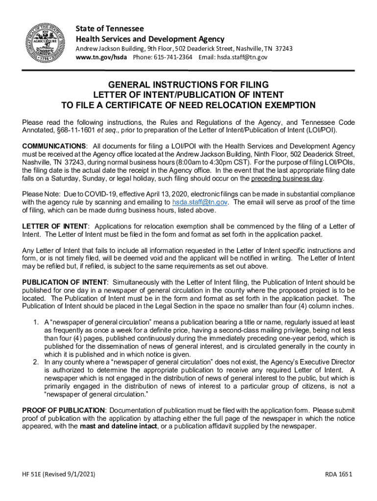 State of Tennessee Health Services and Development Agency Andrew Jackson Building, 9th Floor, 502 Frederick Street, Nashville, TN 37243 www.tn.gov×USDA Phone: 6157412364 Email: USDA. Staff@tn.general