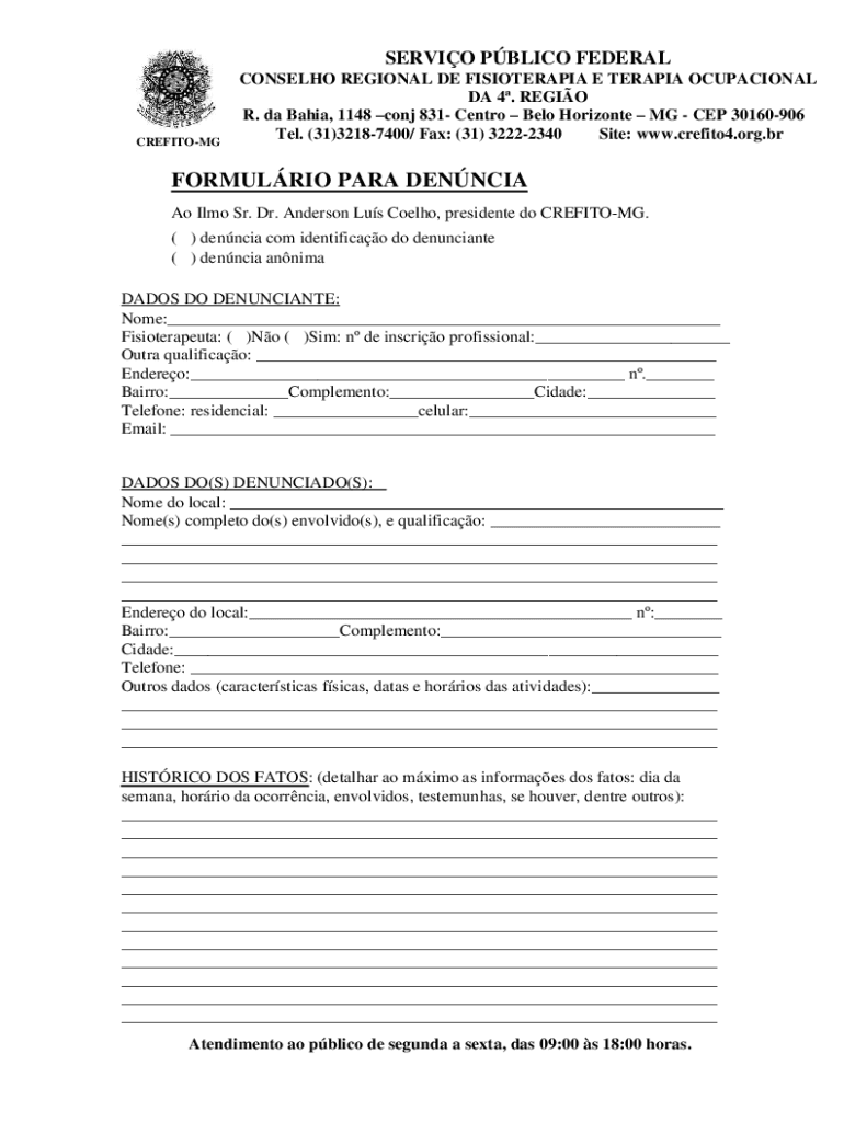 Get the free PDF FORMULRIO PARA DENNCIA - CREFITO-4