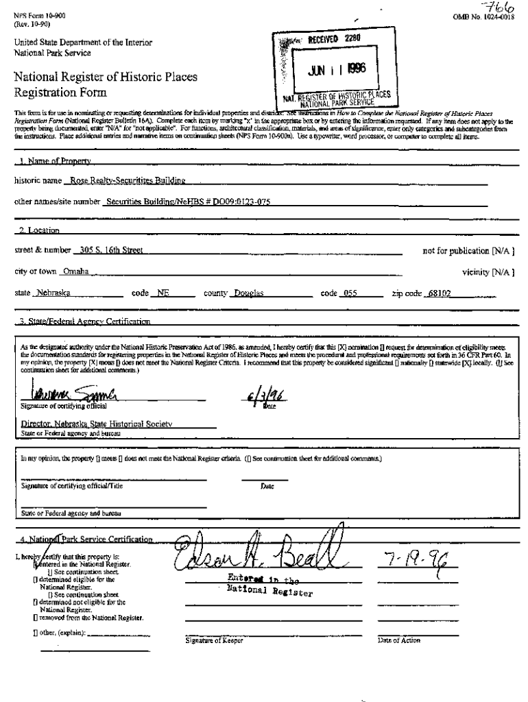 NFS Form 10900 (Rev. 1090)^ some No. 10240018RECEIVES 2280United State Department of the Interior National Park Service 1 national Register of Historic Places Registration Forman i 1 9KRFRISTER OF