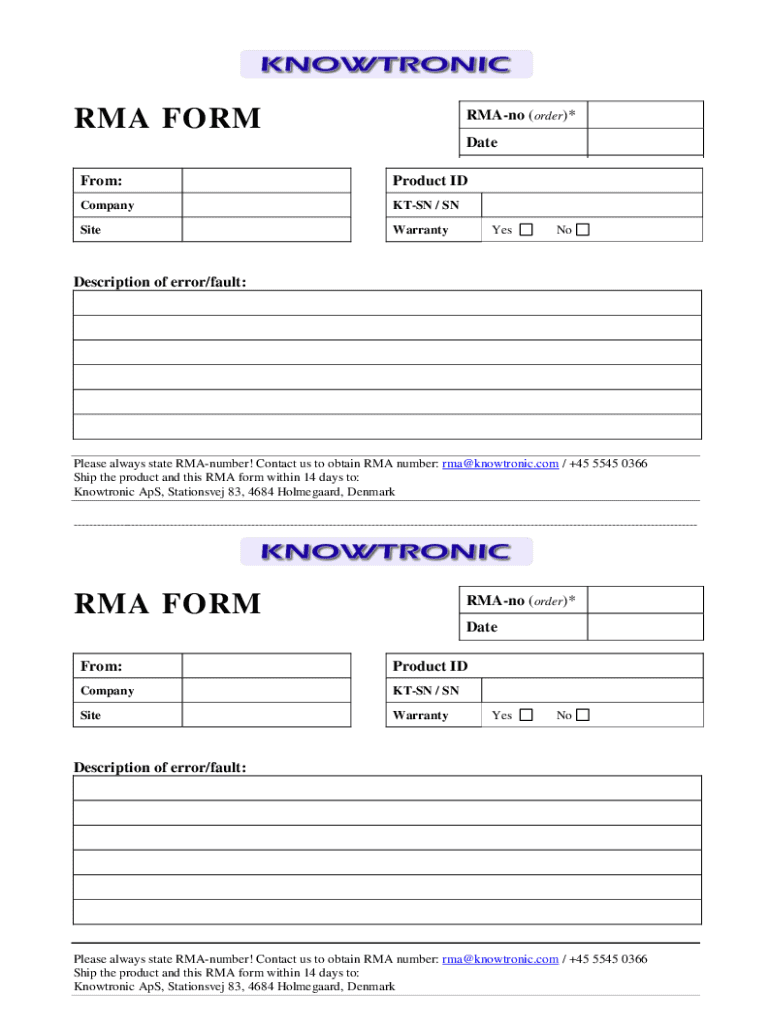 Customers who wish to return products purchased from Knowtronic are required to file an RMA form.