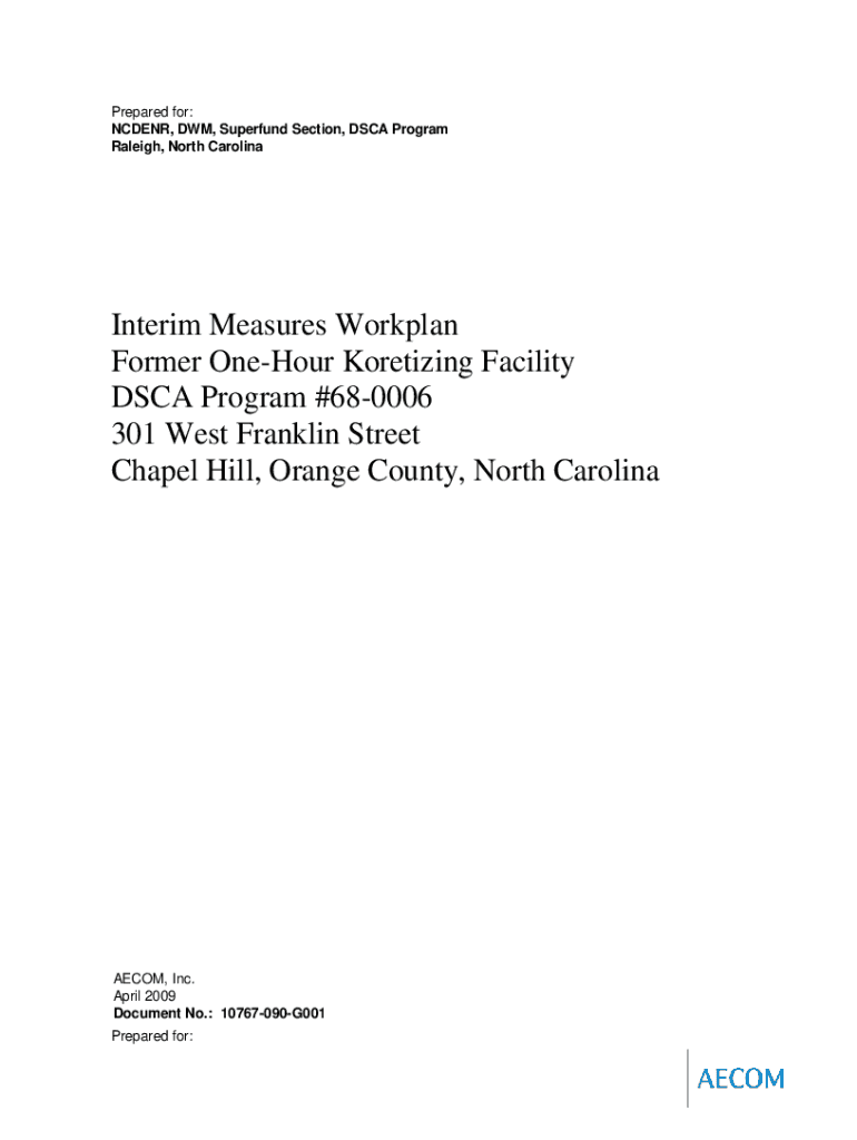 Prepared for: NADER, DWM, Superfund Section, DSC Program Raleigh, North CarolinaInterim Measures Work plan Former Onerous Monetizing Facility DSC Program #680006 301 West Franklin Street Chapel Hill,
