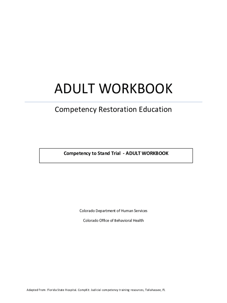 ADULT WORKBOOK Competency Restoration EducationCompetency to Stand Trial ADULT WORKBOOK Colorado Department of Human Services Colorado Office of Behavioral HealthAdapted from: Florida State Hospital.