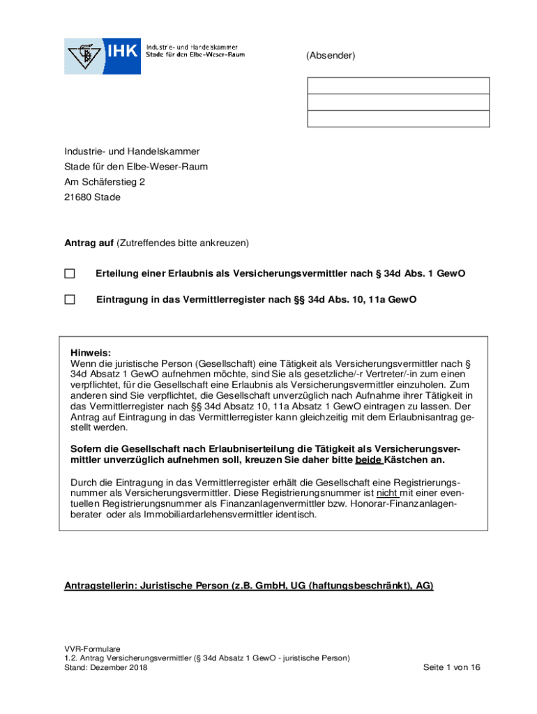 (Ab sender×Industries UND Handelskammer State for den ElbeWeserRaum Am Schferstieg 2 21680 StadeAntrag AUF (Zutreffendes bitter ankreuzen) Derailing anger Erlaubnis ALS Versicherungsvermittler each