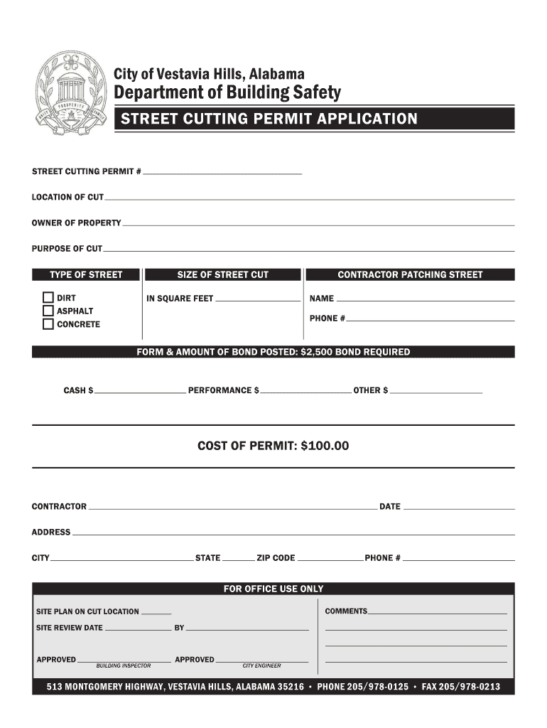 Get the free Street Cutting Permit Application - Vestavia Hills