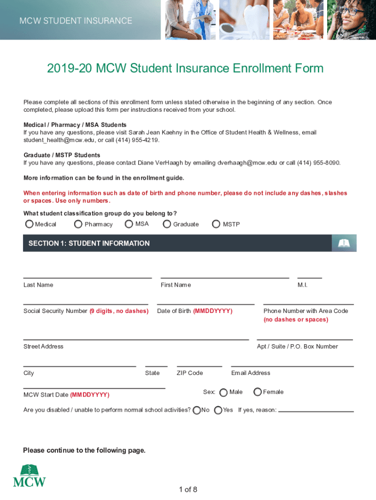 MCG STUDENT INSURANCE201920 MCG Student Insurance Enrollment Form Please complete all sections of this enrollment form unless stated otherwise in the beginning of any section. Once completed, please