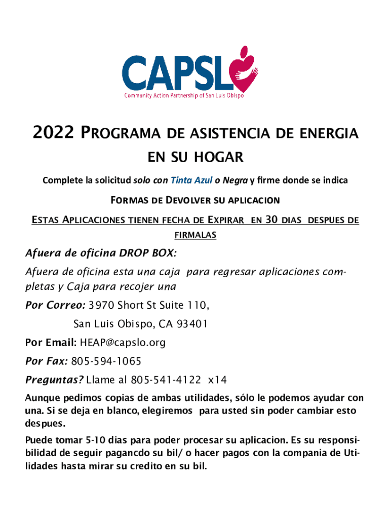 2022 PROGRAM ASISTENCIA DE ENERGIES SU HAGAR Complete la solicited solo con Tina Azul o Afro-American y fire done SE indicators DE Revolver SU application ESTES APPLICATIONS TIE NEN FEC HA DE EXPIRED
