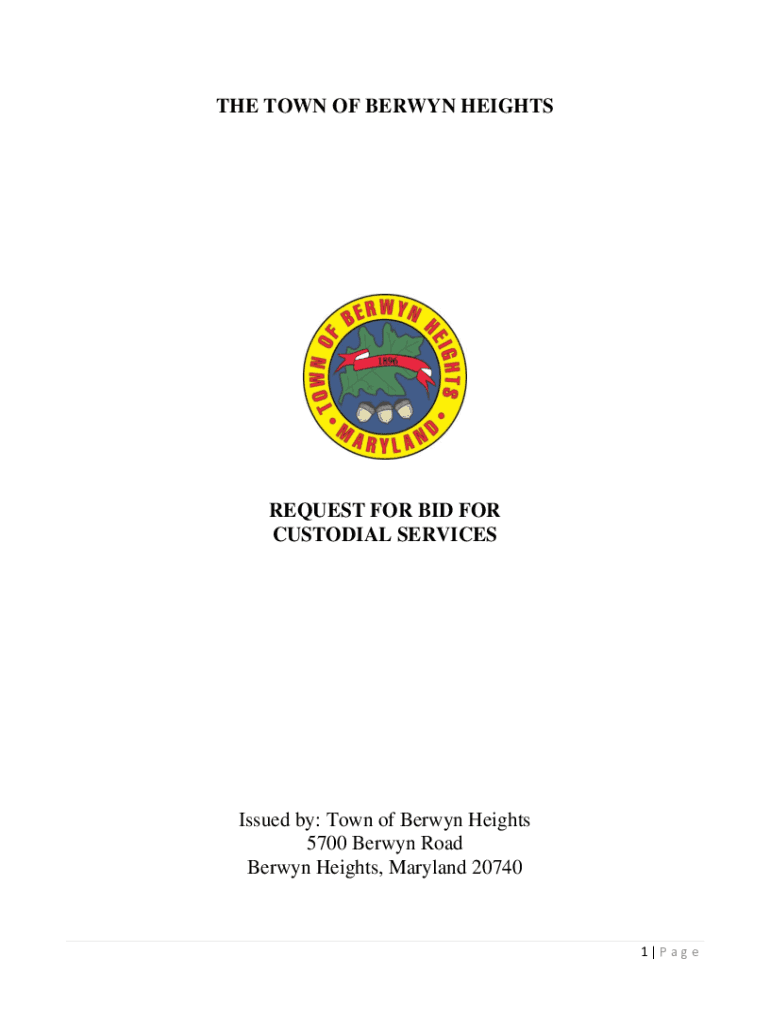 Get the free www.berwynheightsmd.govhomenewsCustodial Services Request for BidTown of Berwyn Heig...