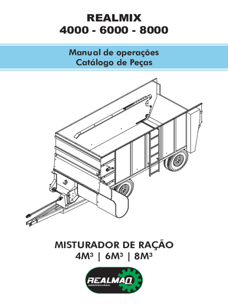 REALM 4000 6000 8000 Manual DE operas Cat logo de PeasMISTURADOR DE RAN 4M × 6M | 8MMISTURADOR DE Manual de OperaesApresentaoEste manual divides' em dual parts: Primary part Manual de Operao: Destinies