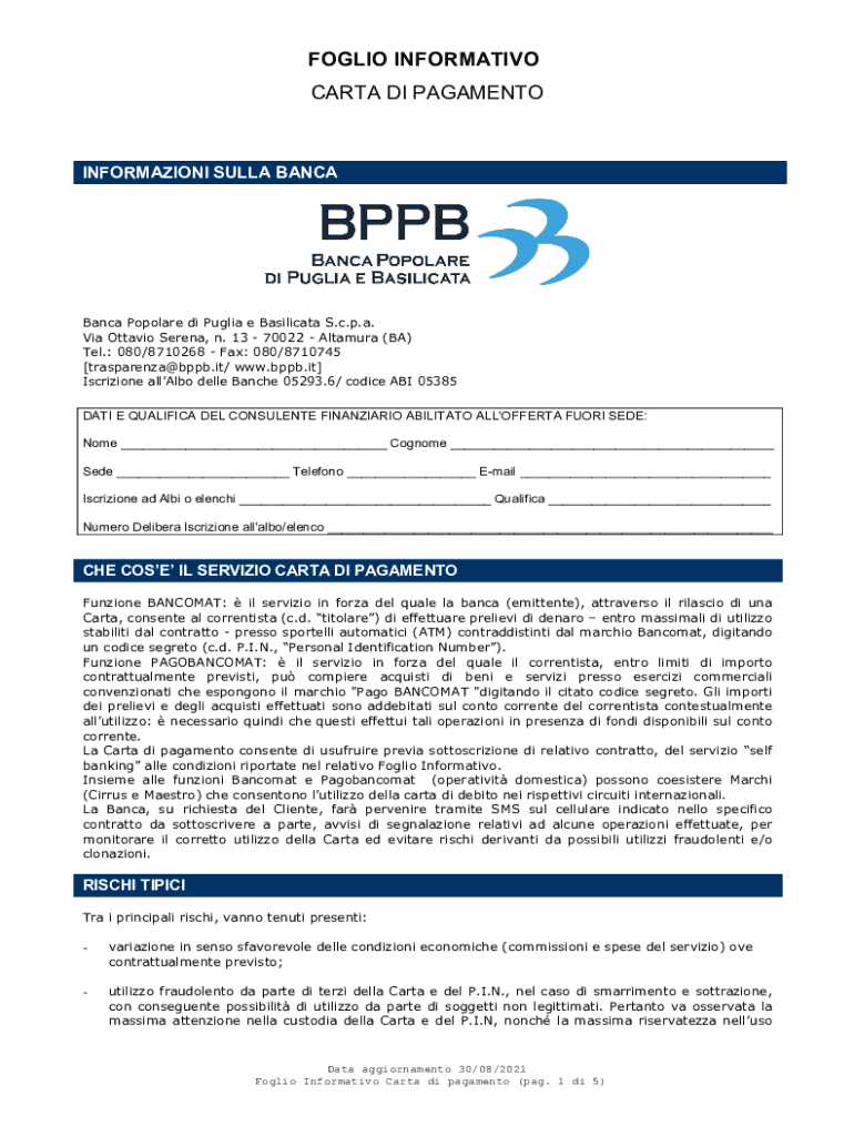 Foglio informativo conto di is required by individuals who want to open a bank account or apply for certain financial services.