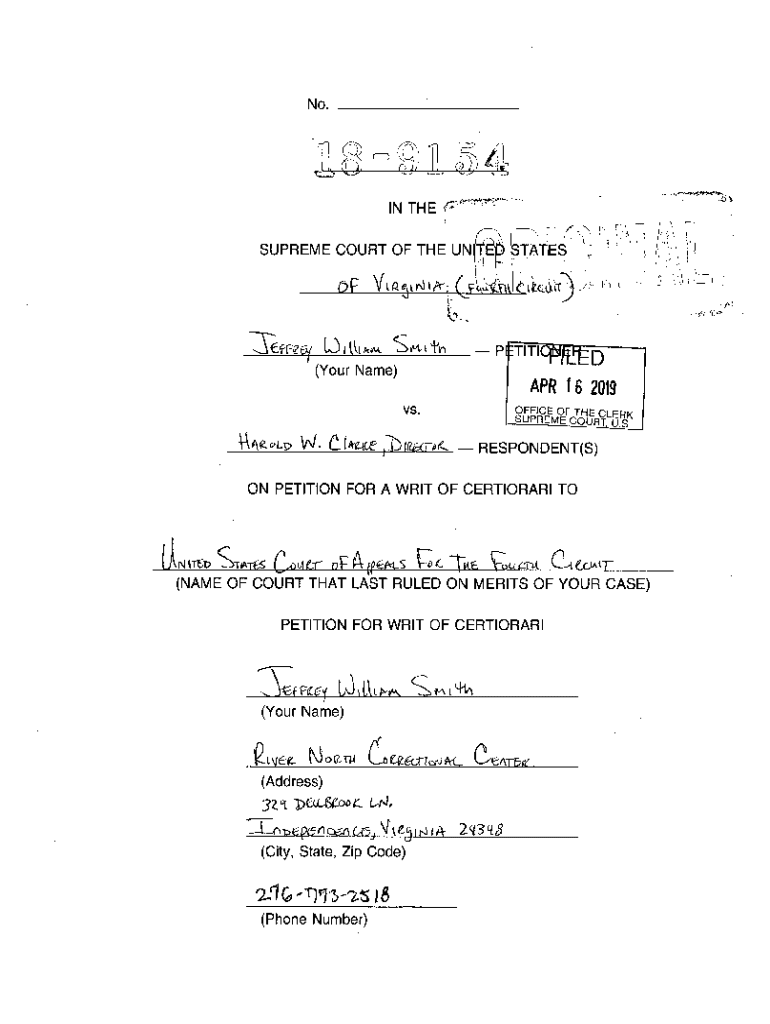 L ID, IIIiNTHEcSUPREME COURT OF THE UNICV STATES\' \'LKM (Your Name×vs. ITITI2019 7 O FFICEroLDf\'1 Flute CLERK URT U.S. Respondent(S)ON PETITION FOR A WRIT OF CERTIORARI TOLr4TD o a !n.i LCT (NAME