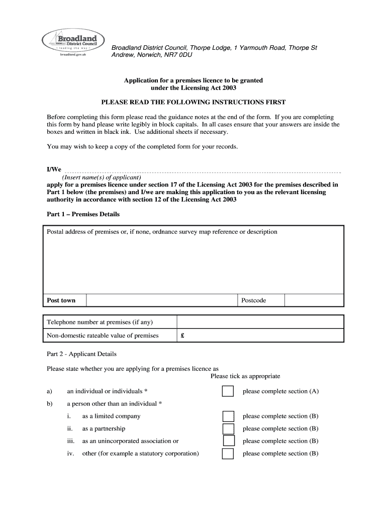 Get the free BApplicationb for Premises Licence - Broadland District Council - broadland gov
