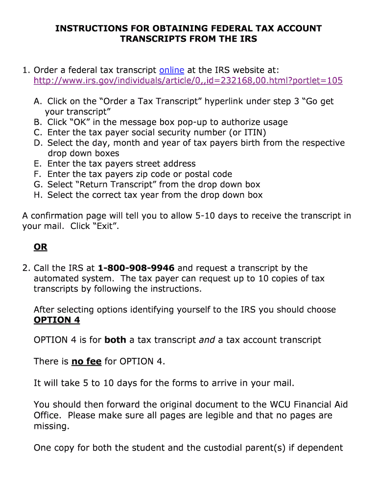 Get the free IRS Federal Tax Transcript Request Instructions