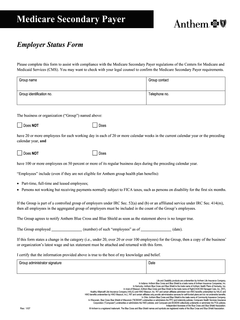 Get the free Medicare Secondary Payer Employer Status Form