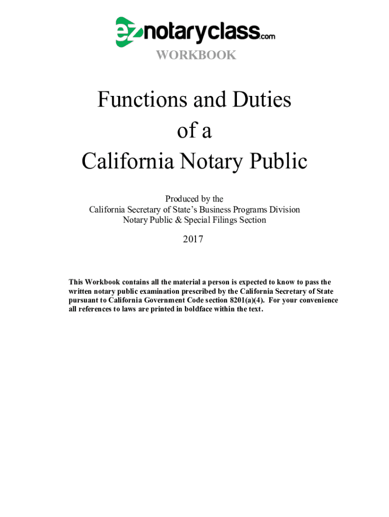 WORKBOOKFunctions and Duties of a California Notary Public Produced by the California Secretary of States Business Programs Division Notary Public & Special Filings Section2017This Workbook contains