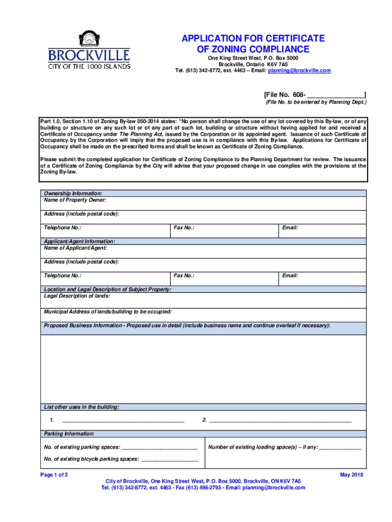 Get the free brockville.comUploadedFilesCertificate ofAPPLICATION FOR CERTIFICATE OF ZONING COMPL...