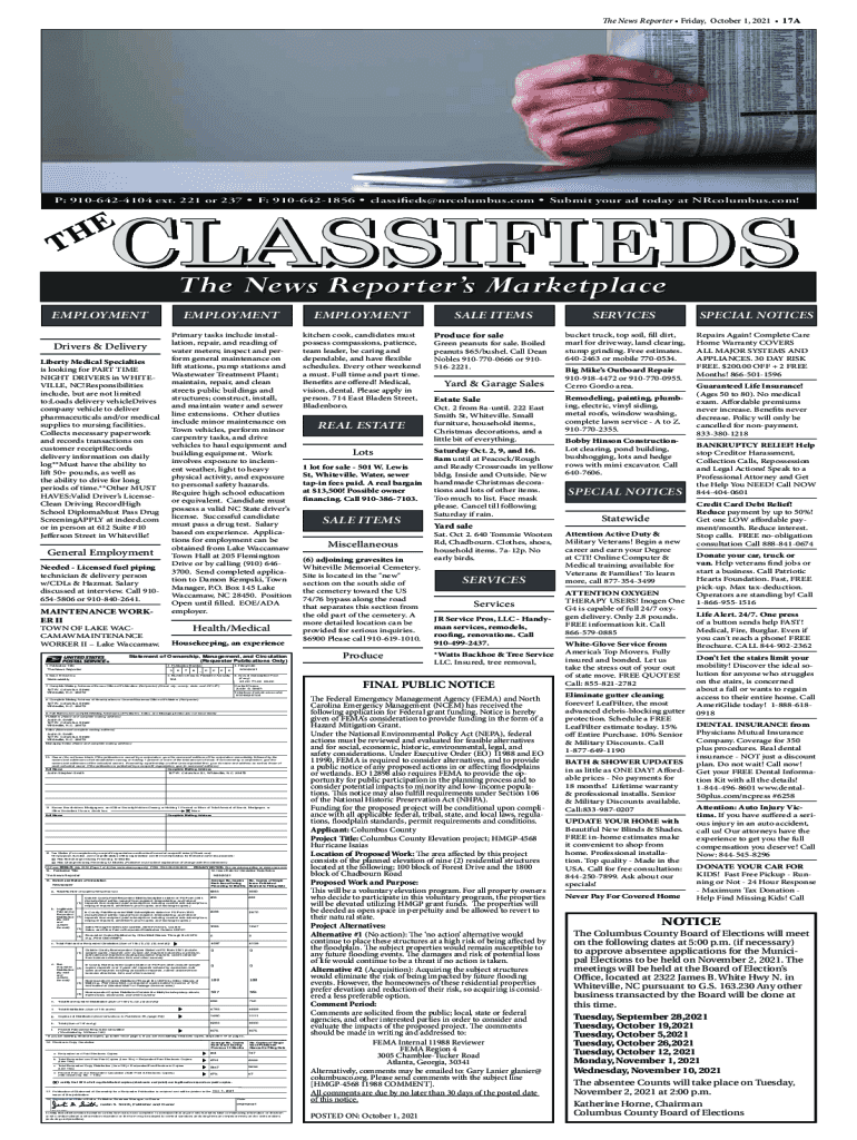 The News Reporter Tuesday,1,December 1, 2020 The2B News Reporter Friday, October 2021 17AP: 9106424104 ext. 221 or 237 F: 9106421856 classifieds×nrcolumbus.com Submit your ad today at NRcolumbus.com!CLASSIFIEDS
