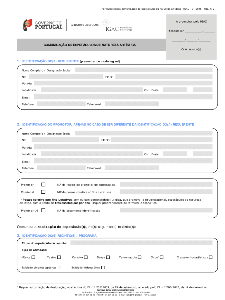 Formulaic para communicate de espetculos de nature artistic IAC V1×2015 Pg. 1×2A preacher plea IAC Process n. ___/___ ___/___/___COMMUNICATE DE ESPETCULOS DE NATURE ZA ARTISTIC O×A tonic×a)1.