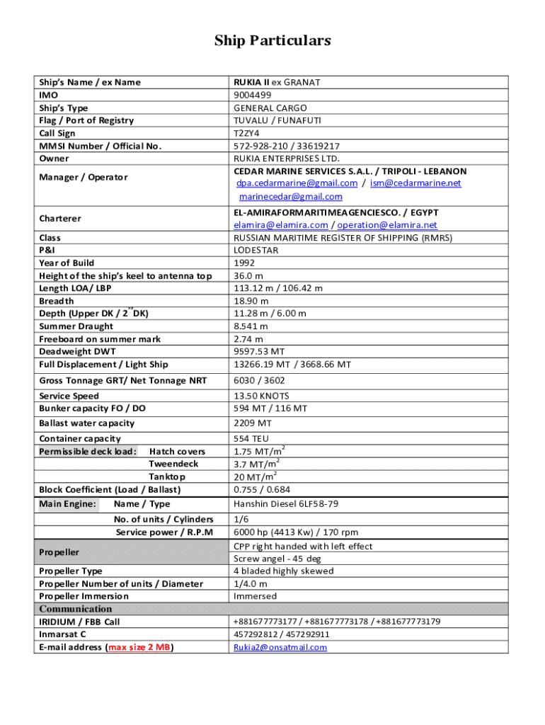 Get the free ISM Documents / Ship Particulars Form - VRS Maritime Services ...
