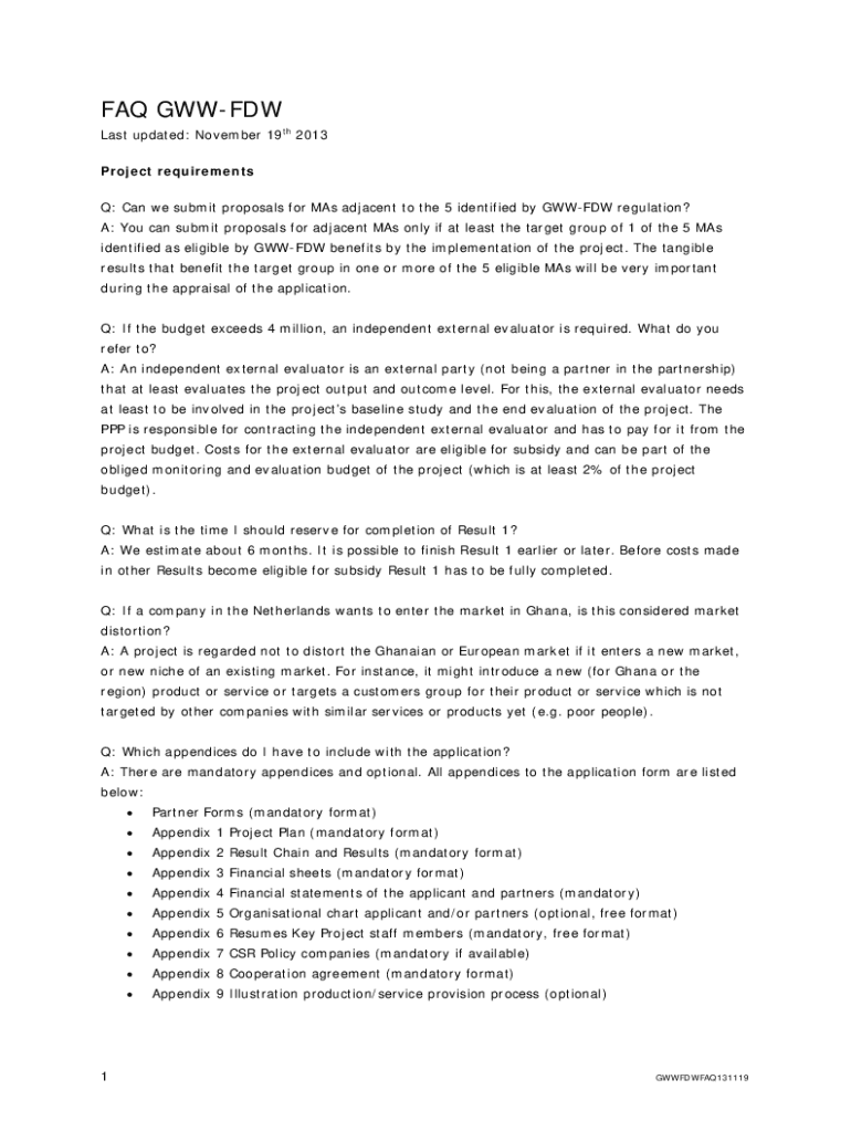 FAQ WWF Last updated: November 19th 2013 Project requirements Q: Can we submit proposals for MA's adjacent to the 5 identified by WWF regulation? A: You can submit proposals for adjacent MA's only