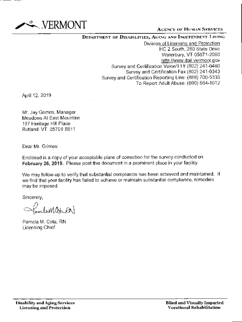 4, VERMONT4.0\”.AGENCY OF HUMAN SERVICESDEPARTMENT OF DISABILITIES, AGING AND INDEPENDENT LIVINGDivision of Licensing and Protection HC 2 South, 280 State Drive Waterbury, VT 056712060 HTTP://www.dail.vermont.gov